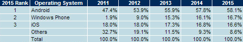 V loňském roce dosáhl podíl Windows Phone na trhu jen mizivých 1,9%, raketový nárůst očekává IHS právě letos, kdy by se podíl WP měl vyšplhat na rovných 9%. V roce 2015 bude podíl dle odhadů 16,7% (z toho více jak 50% bude držet právě Nokia), což je o jednu desetinu procenta více než analytici připisují Applu. iOS tak zjevně zaujme místo na chvostu velké trojky mobilních operačních systémů. Bude opravdu tandem Microsoft & Nokia tak úspěšný?