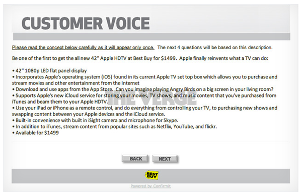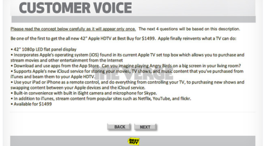 Největší internetový obchod na světě Best Buy rozeslal svým zákazníkům pravidelný dotazník, ve kterém poptává zájem o nové produkty. Na tom není nic tak zvláštního, kdyby jeho cílem nebyla Apple HDTV, tedy televizor z dílny Apple, který podle mnohých odhadů a analýz bude představen již v tomto roce. Best Buy uvádí poměrně zajímavé informace o televizoru společnosti Apple. Apple HDTV, jak by měl znít název televizoru, bude obsahovat operační systém iOS, který bude mít kompletní přístup do iTunes App Store s možností stahovat a spouštět aplikace pro iPhone, iPod touch a iPad. Apple HDTV by se měl podle serveru Best Buy dostat do nabídky ještě v letošním roce za cenu 1499$. Velkou otázkou však zůstává, zda Best Buy skutečně ví něco víc než my, nebo pouze využil zájmu o Apple televizor a udělal si zdarma velkou reklamu.