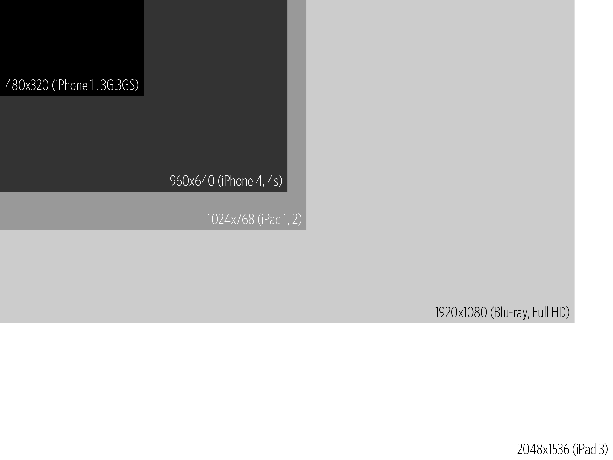 Chris Koerner zveřejnil na svém blogu ilustraci, názorně porovnávající rozlišení jednotlivých displejů, které v současné době většina uživatelů používá. Porovnal rozlišení iPhone 2g, 3G, 3Gs, iPad 1. a 2. generace, iPhone 4 a 4s, Blu-ray a FULL HD s iPad 3. generace a jeho očekávaným rozlišení. Při vytváření ilustrace vycházel z toho, že většina informací z poslední doby hovoří o rozlišení 2048×1536 pixelů u iPadu 3. generace. Pokud se rozlišení skutečně potvrdí, budou muset vývojáři znovu předělávat aplikace pro vyšší rozlišení, stejně jako při přechodu z iPhone 3Gs na iPhone 4. Na druhou stranu se tak vybarví vývojáři, kteří mají o své aplikace a zejména zákazníky skutečný zájem a nadále se podílejí na vývoji a ty, kteří si chtěli jen zkusit jaké to je být v iTunes App Store.