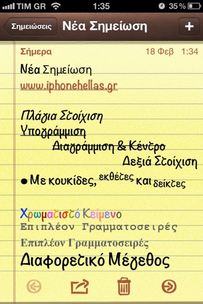 Rich text format zvládá z nativních iOS aplikací prozatím jen Mail a jistě by se spoustě lidem hodil i kupříkladu v Poznámkách. V Cupertinu si tento nedostatek uvědomili a příští update iOS 5 by měl již tuto vlastnost přinést. Krom Rich Text Format se v iOS 5.1 podle všeho objeví i slider pro kameru na lock screenu a Siri by se měla naučit Japonsky.