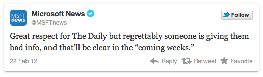 V noci jsme vám přinesli informaci o vydání Microsoft Office pro iPad, kterou zveřejnil Murdochův deník The Daily, který vychází exklusivně pouze na iPadu. Microsoft prostřednictvím webových stránek deníku The New Your Times dementoval informace o vydání Microsoft Office pro iPad. Stejná zpráva se následně objevila taktéž na oficiálním účtu společnosti Microsoft na sociální síti Twitter.
