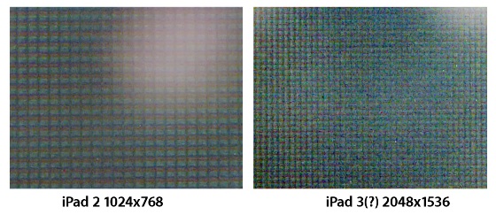 Jak je vám asi známo, před několika málo dny se v redakci Macrumors objevil údajný displej nového iPadu 3. Podle jejich zkoumání se nový displej opravdu dočkal navýšení rozlišení a z toho plynoucí i vyšší hustoty pixelů. V Macrumors se nicméně rozhodli displej „půjčit“ svým kolegům z iFixit, aby displej podrobili důkladnější analýze. Jak jsem již zmínil výše, nový displej dosahuje vyššího rozlišení než současná generace, což iFixit potvrdili svým zkoumáním pod mikroskopem. Přesné hodnoty jsou 2048×1536 pixel u nové generace oproti 1024×768 pixelům u současného iPadu 2, tedy jde o čtyřnásobné navýšení rozlišení. S tímto se pojí i hustota pixelů na palec, která je u displeje současné generace jablečného tabletu 132 ppi, displej iPadu 3 dosahuje 263 ppi. Prakticky tedy nejde přesně o retina displej, jelikož retina displej, kterým prozatím disponuje jen iPhone 4S má 326 ppi. Vzhledem k tomu, že drtivá většina z nás drží iPad mnohem dále od obličeje než iPhone je tato hodnota absolutně dostačující. Navíc novému displeji hraje do not i fakt, že svým rozlišením převyšuje současné televize a rozlišení Blu-ray disků (třeba se retina displeje dočkáme u Apple TV).