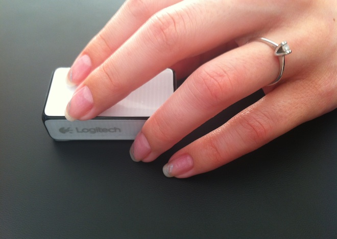 Myš obsahuje pouze jedno fyzické tlačítko, to však funguje jako pravé i levé dohromady. Pokud kliknete na přední polovinu myšky, funguje jako levé tlačítko, pokud na zadní polovinu, reaguje jako pravé tlačítko. Po chvilce se samozřejmě dá zvyknout, ale je to takové zvykaní typu, člověk si zvykne na všechno. Scrollování funguje díky dotykovému povrchu stejně jako u Magic Mouse, ovšem pouze ve vertikální ose. Myška tedy skutečně umí pouze jediné gesto a to je dáno fyzicky, nepomohou vám žádné ovladače ani hacky, Logitech Cube umožňuje pouze scrollování ve vertikální ose. Dotykový povrch má tedy jednoznačně pouze jediný účel, nahradit klasické kolečko. Scrollování mi osobně nefunguje tak kvalitně jako u Magic Mouse, to však může být způsobeno softwarem v mém MacBook Pro a proto si netroufám hodnotit funkci scrollování v globále.