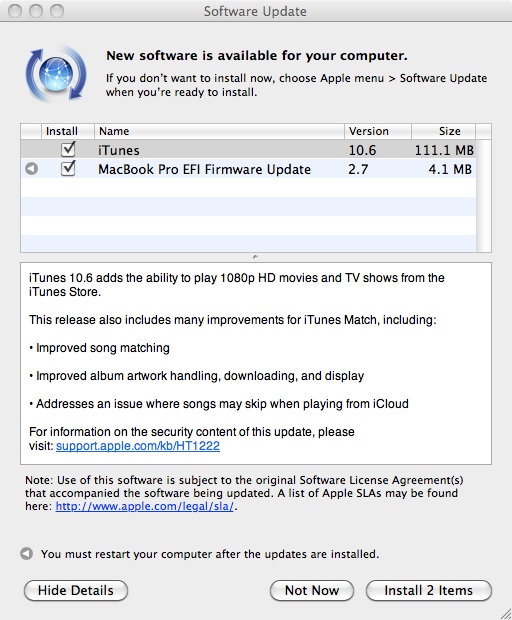 Apple vydal novou verzi multimediálního přehrávače iTunes, tentokrát ve verzi iTunes 10.6. Nejdůležitější novinkou iTunes 10.6 nemůže být nic jiného, než možnost přehrávat 1080p HD filmy a TV seriály z obchodu iTunes Store. Tato verze iTunes obsahuje mnoho drobných vylepšení a oprav a to včetně vylepšeného vyhledávání shodných skladeb nebo vylepšené správy coverů jednotlivých alb, včetně jednoduššího stahování a zobrazení obalů. Mezi další novinky pak patří řešení problému, kdy mohlo při přehrávání z iCloud docházek k přeskakování skladeb. Samozřejmostí je také podpora Apple TV 3. generace a nové verze tabletu iPad, který je možné s iTunes 10.6 synchronizovat. Zajímavostí je také fakt, že zatím co na Mac OS X 10.7.3 je velikost iTunes 10.6 pouze 81,4MB, ve verzi pro Mac OS X 10.6.8 Snow Leopard zabírá update na novou verzi iTunes 10.6 celých 111.1MB. iTunes 10.6 můžete stahovat pomocí služby Software Update nebo přímo zde.