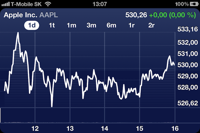 *Hodnota akcii v čase uzavření obchodování na burze pro den 6. 3. 2012, v předvečer představení iPad 3. generace.