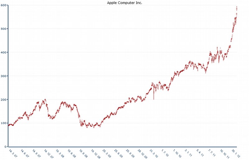 Navzdory nadpisům z jiných dokonce ekonomických webů je potřeba zdůraznit, že hodnota akcií společnosti Apple vzrostla o polovinu původní částky. V době úmrtí Steva Jobse byla hodnota jedné akcie Apple 380$, nyní je to těsně pod 600$. Informaci o polovičním růstu akcií navíc vypustil server Mashable.com v momentě, kdy akcie Apple překonaly hranici 570$ za kus, tedy v situaci, kdy skutečně stačilo k 380 přičíst polovinu této částky.
