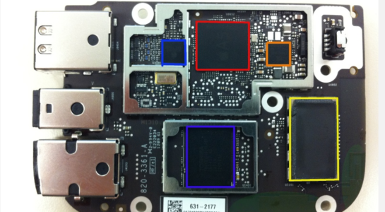 Pri poslednom media evente, spoločnosť Apple predstavila okrem nového iPadu aj ďalšiu generáciu Apple TV. Jej hlavné vylepšenie spočíva v podpore obsahu s rozlíšením 1080p, ktorým disponuje väčšina súčasných moderných televíznych prijímačov. Poháňaná je známym čispetom A5, no podrobnejšie špecifikácie neboli známe, až kým sa na fóre xbmc.org neobjavili snímky, zachytávajúce túto novinku úplne rozobratú. Čipset A5 v Apple TV 3, je identifikovaný ako APL2498 s jednojadrovým procesorom, vyrobený v priebehu siedmeho týždňa roku 2012, čo je približne v polovici Februára. Označenie pamätí RAM svedčí o použití 512MB čipu od Hynix. Taktiež ako v predchádzajúcej verzii, je k dispozícii 8GB flash úložisko potrebné pre operačný systém, vyrovnávaciu pamäť a ukladanie streamovaného obsahu.
