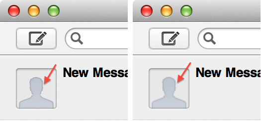 *Na levém obrázku vidíte zobrazení aplikace Messages v rozlišení HiDPI v OS X 10.8 Mountain Lion. V pravém obrázku je stejná aplikace při standardním rozlišení OS X 10.8 Mountain Lion. Rozdíl je patrný na místech označených červenou šipkou
