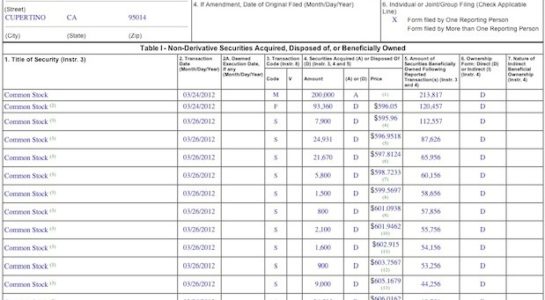 Pracovat pro společnost Apple je snem mnoha našich čtenářů. Většina z nich za touto prací vidí spíše možnosti dostat se k technologickým novinkám jako první na světě a stanout v čele revolučních produktů. Na druhou stranu se jedná o nesmírně dobře placenou práci. Steve Jobs byl známý tím, že vždy uměl své zaměstnance skvěle ohodnotit a dokázal se jim odvděčit za přínos společnosti. Steve Jobs spolu s valnou hromadou Apple Inc. v průběhu uplynulých let udělovalo zaměstnancům na vrcholných postech společnosti odměnu v podobě akcií společnosti. Akcie sebou nesly podmínku, že je může každý zaměstnanec obchodovat až po určitém čase. Vedení Apple tak bylo motivováno, aby dosahovalo co nejlepších výsledků a hodnota jejich akcií stoupala. Na začátku roku skončila výše uvedená podmínka pro několik stovek tisíc akcií, které obdržel Tim Cook, Philip Schiller, Peter Openheimer, Robert Mansfield a Scott Forstall. Pánové tak vzhledem k výhodné hodnotě akcií na nic nečekali a rozhodli se cenné papíry proměnit na skutečný majetek. Celkově se dne 24. 3. 2012 zasloužilo pět vrcholných manažerů společnosti Apple Inc. o prodej akcií v hodnotě 314 677 763$.