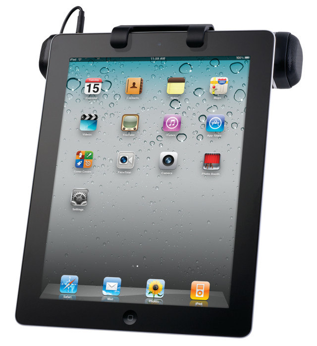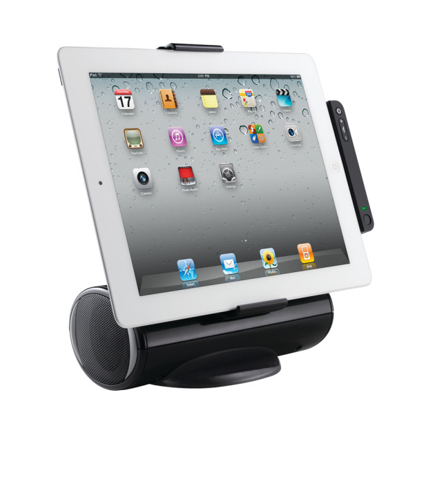 Stojan s reproduktory Logitech Speaker Stand for iPad vám umožní vychutnat si bohatý stereofonní zvuk z vašeho tabletu. Stojan lze snadno nastavit pro pohodlné sledování ve vertikální i horizontální poloze, nebo tak, abyste zabránili lesku obrazovky. Doma jej můžete snadno přenášet a poslouží také pro dobití vašeho iPadu – a to dokonce i po vypnutí reproduktorů.