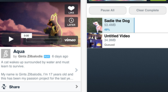 Známý server pro ukládání video obsahu Vimeo, aktualizoval svou stejnojmennou aplikaci. Ta nyní dokáže automaticky určit rychlost uživatelova připojení k internetu a v závislosti na něm spustit přehrávání v adekvátním rozlišení, nově až do 1080p. Autoři zapracovali také na vyrovnávací paměti, která je nyní spolehlivější a přesnější. Aplikaci můžete zdarma stáhnout přímo zde.