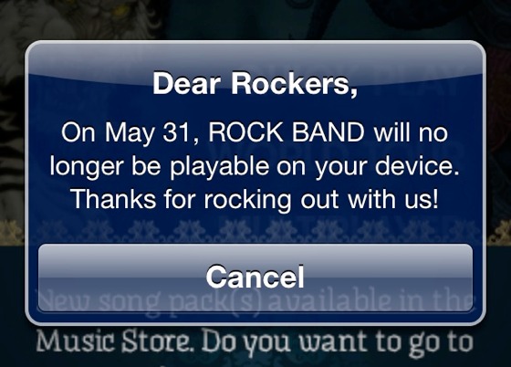 Během dnešního rána jste si na některých serverech mohli přečíst následující: Hra Rock Band pro iOS zařízení, tedy pro mobilní telefon iPhone, tablet iPad a multimediální přehrávač iPod touch bude již za 31. 5. 2012 tedy za čtyři týdny zablokována a nebude možné ji dále hrát. Hra totiž vyžaduje připojení na servery společnosti EA, které budou od výše uvedeného data odstaveny. Zarážející však je, že EA hru dále v iTunes App Store nabízí za poměrně vysokou cenu 3,99€ a to i přes to, že si ji hráči užijí jen čtyři týdny. Hra navíc v iTunes App Store neobsahuje žádné upozornění na tuto skutečnost a uživatel se dozví o skončení podpory až po koupi. Uživatele měli taktéž a ještě stále mají možnost zakoupit do hry další doplňkové balíčky, jejichž celková cena se vyšplhala až na několik desítek Eur.