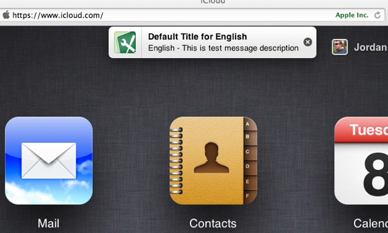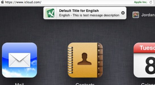 Apple začal dnes večer testovat oznamovací okna ve službě iCloud, které se zobrazí po přihlášení na iCloud.com. V současné době zpráva zobrazuje pouze informační text: Výchozí titulek pro angličtinu – toto je popis testovací zprávy. Zajímavá je však ikona, která se vedle zprávy zobrazuje, ta totiž souvisí s označením pro řešení problémů a nápovědu a Apple ji používá již delší dobu právě v této souvislosti. Je tedy velmi pravděpodobné, že bude Apple používat notifikační bubliny v iCloud.com pro oznámení informací ohledně technických problémů nebo údržby služby iCloud.
