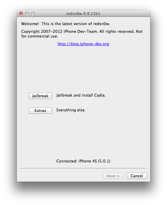 1. Otevřete RedSn0w 0.9.11b1 a připojte iOS zařízení.