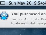 Poslední vývojářské sestavení očekávaného operačního systému OS X 10.8 Mountain Lion přináší automatické stažení aplikací z Mac App Store. Pokud si koupíte na jednom ze svých počítačů s operačním systémem OS X 10.8 aplikaci, automaticky se tato aplikace nainstaluje na všechny další počítače. Bohužel to nefunguje tak dokonale jak by se dalo očekávat a aplikace se před instalací a stažení zeptá, zda ji chcete nainstalovat. Nicméně tak získáte možnost jednoduše odkliknout instalaci aplikace bez toho, aniž byste museli otvírat Mac App Store a hledat aplikaci.