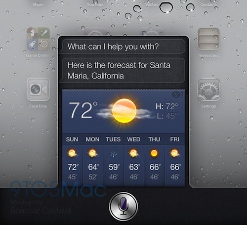 Jak víme z prohlášení Tima Cooka, Apple je nadšený tím, jak lidé, zejména v USA milují digitální asistentku SIRI. Digitální asistentka SIRI je v současné době dostupná výhradně pro uživatele iPhone 4S. Dokonce ani nový iPad 3. generace, který vyšel později než iPhone 4s nedostal do vínku SIRI, ale pouze Voice dictation, tedy pouze možnost diktovat text, který iPad přepíše do textu. Jednou z novinek iOS 6 bude podle serveru 9to5mac.com, jenž patří mezi světově nejrespektovanější zdroje informací v oblasti Apple, bude příchod SIRI na iPad.