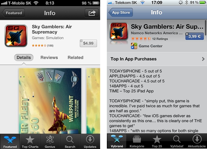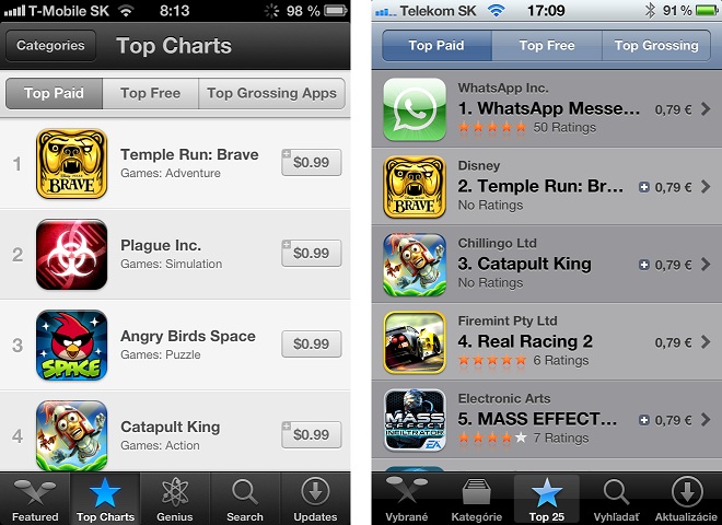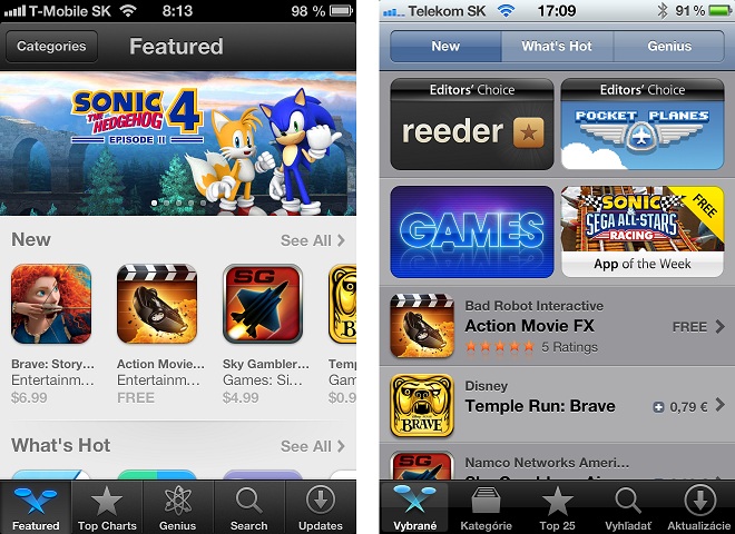 - App Store (vľavo iOS 6, vpravo iOS 5.1.1)
