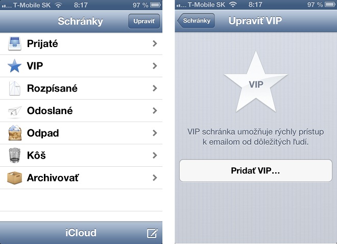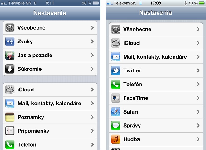 - Menu>Nastavenia (vľavo iOS 6, vpravo iOS 5.1.1)