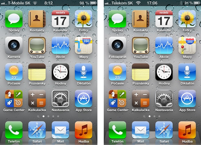 - Domáca obrazovka (vľavo iOS 6, vpravo iOS 5.1.1)