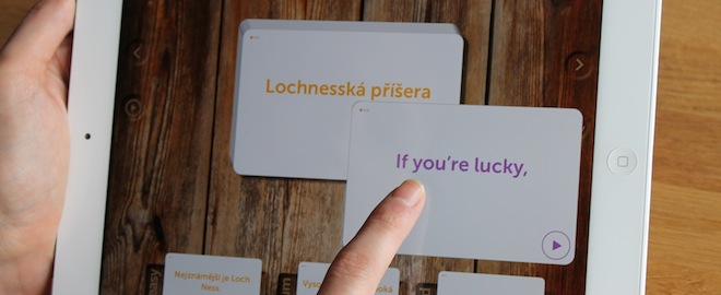- Flashcards (ozvučené kartičky) vycházejí z poznatku o tzv. křivce zapomínání. Aby se určité informace dostaly do dlouhodobé paměti, je třeba je pravidelně opakovat. Na jedné straně kartičky je anglická fráze a na druhé je český ekvivalent. Studenti si karty třídí, převracejí, přehrávají atd. Aplikace ze všech prostudovaných karet sestavuje opakovací balíčky podle jednoduchého klíče: Kartičky, které student označí jako těžké, se do opakování vracejí již druhý den. Středně těžké karty opakuje po třech dnech a ty jednoduché za týden. Takže i když nějakou frázi považuje za jednoduchou, systém mu ji přesto nabídne k zopakování, aby se mu vštípila do dlouhodobé paměti.