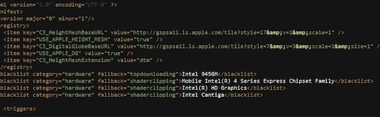 Konkrétne boli v jednom zo súborov vo formáte XML nájdené dôkazy o nepodporovaní Shader efektov, pri starších grafických čipsetoch značky Intel, ktoré obsahovali zariadenia rady Mac. V súčasnej dobe sa jedná o jeden z prvých náznakov toho, že by sa nové mapové podklady od spoločnosti Apple mohli objaviť nie len v operačnom systéme iOS 6 ale aj v OS X. Taktiež sa však môže jednať len o prídavnú funkciu pre vývojárov, ktorá umožňuje testovanie na simulátore v XCode, pri programovaní aplikácie využívajúcej nové mapy pre iOS.