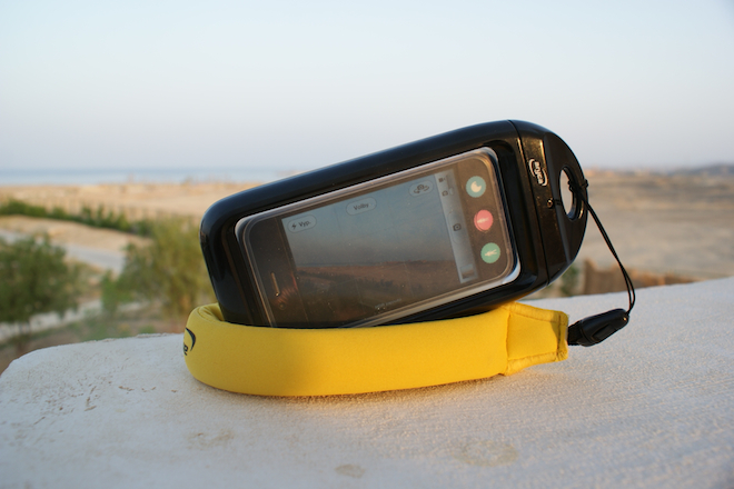 Pouzdro je na milimetr přesné jako iPhone, který do něho stačí vložit, přiklopit předním dílem a následně otočit vrchní uzávěr, který po otočení o 180 stupňů dokonale utěsní gumu, která spojuje vrchní a spodní část pouzdra. Jakmile je otočeno, stačí zaklapnout záklopku, která zaručuje, že pouzdro ve vodě omylem neotevřete. Systém je vymyšlen opravdu skvěle a upřímně jsem neměl o vodotěsnost žádné obavy již od chvíle, co jsme si pouzdro vyzkoušel poprvé zavřít. Co doporučuji udělat ještě dříve než vyrazíte do vody, je dokoupit plavací šňůrku na zápěstí, která je nejen velice příjemná, ale také stoprocentně zabezpečí, že iPhone neztratíte. Poté co si jej nasadíte na ruku totiž nehrozí, že jej necháte uprostřed oceánu a kdyby náhodou během přendávání z jedné ruky na druhou iPhone vyklouzl, nevadí. Šňůrka v křiklavě žluté barvě totiž slouží také jako plovák, který vytáhne pouzdro i s iPhonem na hladinu. Samozřejmě předtím než začnete pouzdro používat nedáte nic za to, když do něj místo iPhone zavřete malý kus papírku a vyzkoušíte například v umyvadle, zda papírek nenavlhne. Když totiž může být rozbitý raketoplán za několik miliard dolarů již z výroby, proč by nemohl být rozbitý také obal za 500Kč. My jsme to udělali v našem druhém videu, na které se můžete podívat níže.