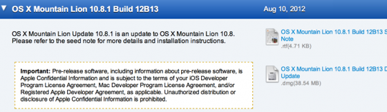 Apple odeslal vývojářům první testovací sestavení nové verze operačního systému OS X 10.8.1 Mountain Lion. Prvním příjemným překvapením je fakt, že s OS X 10.8 Mountain Lion můžete zapomenout na updaty systému, které měly typicky kolem 1GB. Apple nynínahrazuje v systému pouze aktualizované prvky, díky čemuž má první update pro nový systém pouze 36.4MB. Apple vývojáře prosí, aby se během testování zaměřili na služby Active directory, Microsoft Exchange v aplikaci Mail, USB, Wi-Fi, SMB, audio a displej Thunderbolt.