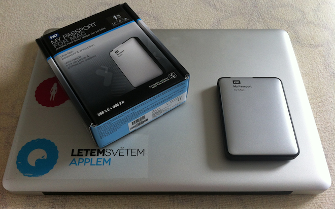 Je tomu doslova pár minut, kdy Western Digital zrušil informační embargo na recenze disků My Passport for Mac 1TB. Novináři, kteří měli disk dopředu k dispozici, tedy včetně naší redakce, tak již nyní mohou publikovat své recenze. Proto se na ni rovnou pojďme podívat, ať si můžete na Letem světem Applem jako první v ČR a SR přečíst recenzi zbrusu nového externího disku My Passport for Mac s kapacitou 1TB. Pokud se vám zdá, že jste podobný disk již viděli v nabídce obchodů, jedná se o starší verzi. Novinka, kterou recenzujeme disponuje USB 3.0, kterým Western Digital osadilo svůj disk jako reakci na příchod USB 3.0 portů do nové generace MacBooků Pro.