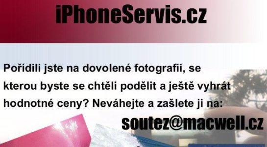Náš dlouhodobý partner společnost Macwell pořádá v těchto dnech soutěž, ve které můžete vyhrát věcné ceny, ale také poukázky na servis svých iOS zařízení. Stačí se podívat na iphoneservis.cz/soutez a vybrat svoji nejlepší fotografii z letošní dovolené. Pak již jen stačí počkat na 15. 9. 2012, kdy začíná hlasování o rovnou sedm šťastlivců, kteří obdrží hodnotné ceny a poukázky na servisní služby. Soutěže se může zúčastnit každá fyzická osoba, která v době trvání soutěže zašle soutěžní fotografii a uvede svou platnou e-mailovou adresu a své jméno. Soutěže se nemohou účastnit zaměstnanci organizátora, všechny agentury spolupracující s organizátorem na této soutěži a osoby jim blízké. Soutěží se o tyto ceny: 1. – 3. místo: poukazy na servis iPhone/iPad, 4. – 7.místo věcné ceny.