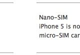 Apple iPhone 5 využívá nový standard NANO SIM karet, které jsou o 40% menší než Micro SIM karty. Apple se během mediálního eventu na kterém představil iPhone 5 o této skutečnosti nezmínil, ale uvádí to na svém webu v detailním popisu iPhone 5. Kvůli novému modelu iPhone tedy budete muset opět vyměnit SIM kartu.