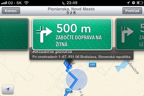 Mapy Apple, o ktoré sa postarala aj spoločnosť TomTom, prinášajú na 3GS len jednu funkciu a to navigáciu. Nejedná sa však o klasickú Turn-by-Turn odprezentovanú na WWDC, ale iba o vizuálnu pomôcku bez akejkoľvek hlasovej služby či možnosti sledovať mapu na zamknutej obrazovke. Napriek tejto absencii je aplikácia spracovaná pekne a je možné sledovať aj dopravu, no nie na Slovenských cestách. Akcie si budeme môcť prezrieť aj v ležatej polohe iPhonu a virtuálne obchody s úplne novým dizajnom.