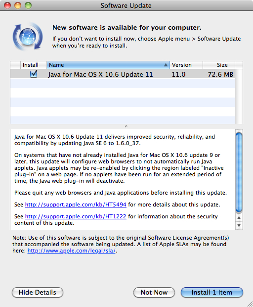 Možnosť nainštalovať si rozhranie Java však nie je povinné inštalovať ju tak treba len v prípade, že je pre vás nevyhnutná. Dôvodom pre ukončenie oficiálnej podpory je práve chybovosť pluginu. Len vďaka Jave totiž začiatkom roka postihol vyše pol milióna počítačov Mac trójsky kôň OSX/Flashback, ktorý odosielal útočníkovi užívateľské dáta pripájaním sa na jeho servery generovaním náhodných webových adries či vyhľadávaním hashtagov na sociálnej sieti Twitter. ESET túto techniku označil ako za doposiaľ nevidenú.