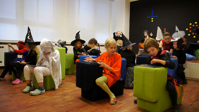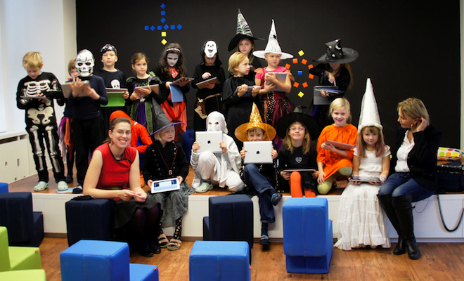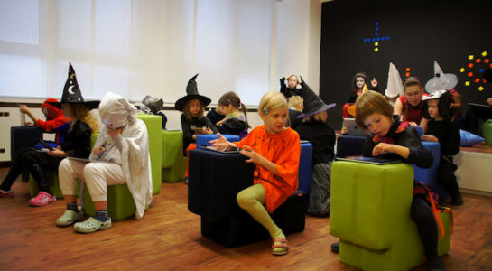 Tisková zpráva: Včerejší vyučování bylo pro děti ze Základní a mateřské školy ANGEL v Praze 12, Modřanech jiné než obvykle, v halloweenských kostýmech oslavily otevření nové učebny, kdy k tradičním učebnicím a sešitům nově dostaly i iPady. Jde o stále populárnější kategorii lehkých mobilních zařízení – takzvané tablety – s velkým displejem, jež se ovládají dotykem.
