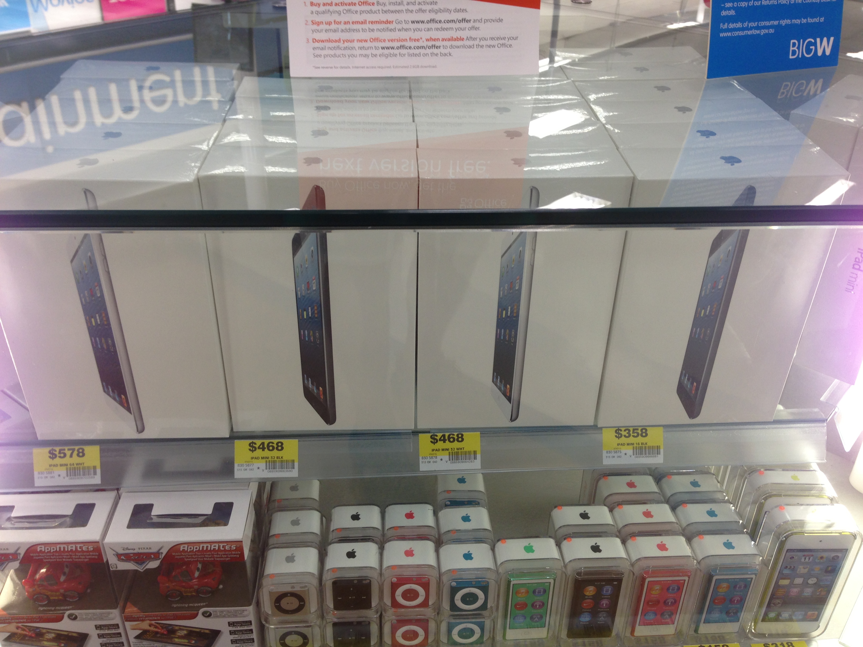 Právě nám dorazila první fotografie od našeho čtenáře z Austrálie, kde již prodávají nový iPad mini a také čtvrtou generaci iPadu mini. Australané si však stěžují na cenu, která je oproti USA o 29$ vyšší, přičemž kurz dolaru a australského dolaru je téměř stejný. Za fotografii děkujeme našemu čtenáři Dmitrimu.