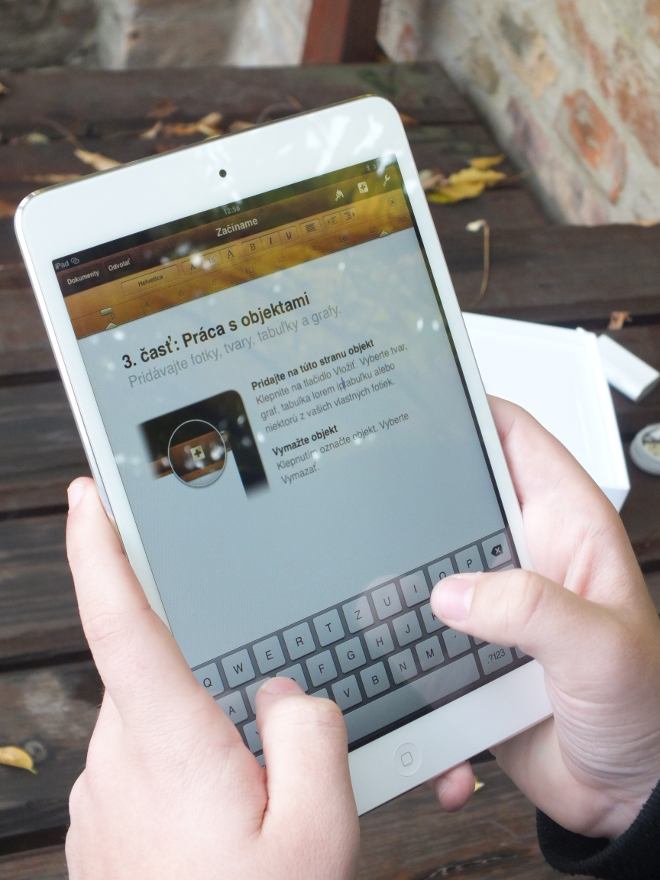 Písal sa rok 2010, keď Steve Jobs svetu predstavil ďalší revolučný produkt spoločnosti Apple – iPad. Ako študent samozrejme aj ja idem s dobou a tak som čoskoro vystriedal zošity za toto praktické, multifunkčné zariadenie. Prvá generácia sa tak stala mojim verným spolupracovníkom a po krátkom čase sa pre mňa stal samozrejmosťou. Kalifornská spoločnosť však len pred dvoma týždňami oficiálne predstavila menšiu verziu zariadenia, iPad mini. Celkom nezaujato a bezdôvodne som sa rozhodol prístroj si predobjednať, aby som ešte v deň vydania mohol posúdiť, čo s ním budem robiť ďalej. Ten deň nastal dnes, 2. novembra 2012. Dnes o ôsmej hodine ráno som objavil zariadenie, ktoré prekonalo moje očakávania.