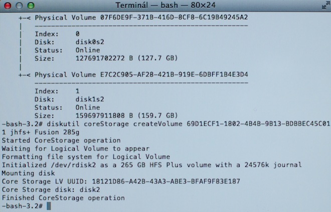 @Mahas: V žádném případě se není za co stydět, pokud člověk přizná, že mu něco není docela jasné. Obávám se, že je potřeba aspoň trochu chápat, o co se tady jedná, neboť ten návod (snímky obrazovek) se vždy bude trochu lišit podle konkréní situace (velikosti disků, volumes, UUID, atd…). Takže pokud se na to sám necítíš, přizval bych někoho zkušenějšího (opakuji, že to není žádná ostuda – pokud ti není jasný tento, dle mého velmi jasný a srozumitelný postup, měl bys to uvážit). Jak zde již bylo řečeno, jde stále o postup experimentální, Applem oficiálně nepodporovaný v mobilních zařízeních (notebooky). Z pohledu uživatele je Fusion Drive oproti kombinaci SSD + HDD rozhodně přínosem, neboť uživatel nemusí řešit, kam která data umístí. Na druhou stranu spojením 2 disků do LVM Group rozhodně stoupne pravděpodobnost ztráty dat, neboť k tomu stačí, aby selhal kterýkoli z disků. Pro uživatele to tedy znamená nutnost častějších záloh. A úplně poslední poznámka – Fusion Drive rozhodně není něco, bez čeho by se nedalo žít… ;)