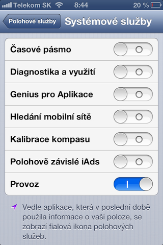 Nejprve je potřeba povolit použití informací o provozu ve vašem iOS zařízení. Stačí když přejdete do Nastavení – Soukromí – Polohové služby – Systémové služby a nakonec povolíte položku Provoz. Samozřejmě musíte mít povoleny Polohové služby celkově. Jakmile máte hotovo, můžete začít v Apple Maps plnohodnotně využívat službu Provoz.