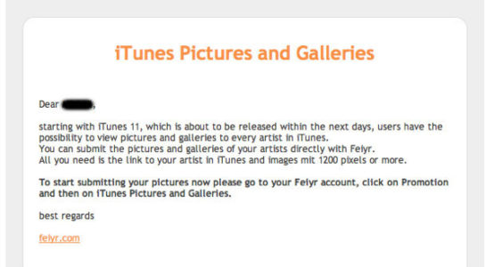 Na zahraničných fórach sa objavil príspevok, podľa ktorého Apple začal žiadať hudobné vydavateľstvá o zverejnenie obrázkových galérii zastupovaných interpretov, ktorých hudba je dostupná na iTunes Store. Práve fotogalérie by mali byť jednou z mnohých nových funkcii a vlastností nového iTunes 11, ktorý by mal vyjsť už v priebehu nasledujúcich dní. Vydanie novej verzie aplikácie totiž bolo po dlhom októbrovom čakaní odložené a na koniec Novembra, kedy by mal byť program už zrejme definitívne dokončený. Nasledovný e-mail mala odoslať umelcom nemecká distribučná služba Feiyr.
