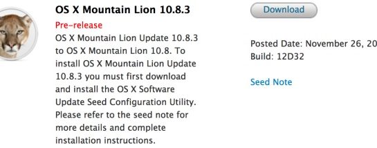 To, čo Apple minulý víkend sľúbil, teraz dodržal a hneď začiatkom týždňa rozposlal vývojárom prvú beta verziu systému OS X 10.8.3, ktorý by mal vyjsť koncom roka. Verzia s označením 12D32 by sa mala zameriavať najmä na AirPlay, AirPort, Game Center a grafické ovládače.