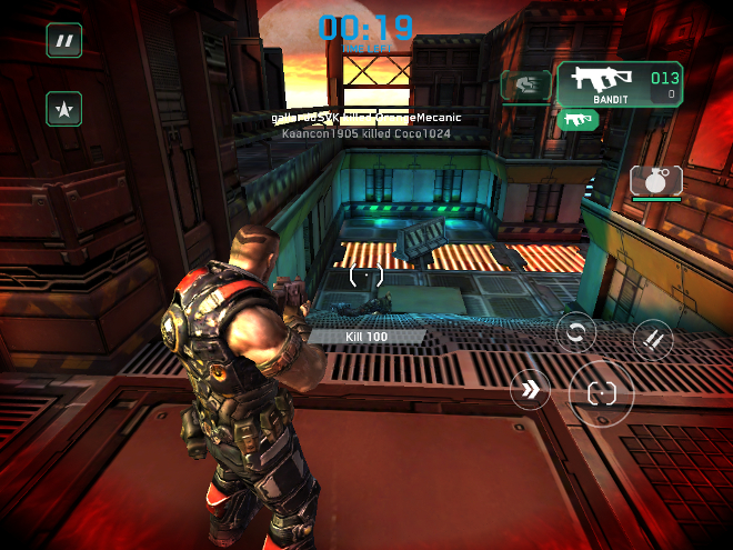 Je to aj preto, že táto hra je dostupná jak na iOS tak i na Android a keďže multiplayer prebieha prostredníctvom serverov tretej strany, na vašom iPade budete môcť hrať proti hráčom, ktorí túto hru budú hrať napríklad na Galaxy S III. Aj toto je jedným z veľkých plus a hre pridávajú len na záverečnom hodnotení. Jednoducho to je niečo, čo sa nevidí každý deň a zároveň má človek pocit, že už iOS nie je taký uzavretý, akým doposiaľ býval. Takáto vlastnosť by určite potešila množstvo konzolových hráčov, ktorý by v prípade realizácie tejto myšlienky mohli hrať tie isté hry nezávisle od toho, či používajú Xbox alebo Playstation. Takéto experimenty však majú aj svoje tmavé stránky a tak je zrejme aj toto jedným z dôvodov, prečo počas hrania dochádza k tzv. lagom, čo rozhodne nie je príjemná vec, najmä ak do hráča vystrieľate celý zásobník a nakoniec vás on zabije granátom. Taktiež by som rád pripomenul, že v hre nie je žiadny auto-aim a tak sa jedná naozaj o záležitosť pre tých, ktorí to s hraním FPS hier na mobiloch myslia vážne. A pokiaľ hru nehodlajú hrať, môžu si aktivovať Spectator Mode a môžu sledovať hru jak z pohľadu rôznych hráčov na bojovom poli, tak aj zo vzduchu po naprogramovanej trase.