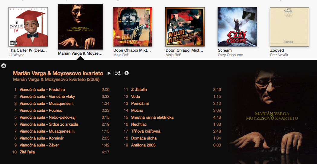 Tato veta mi nedava smysl. „Apple tak funkci jako je například vypalování nebo tvorba coveru pro vytisknutí na vypálené CD, kde šlo vtvořit například obal z několika coverů alb a tak podobně.“ Co s ni chtel autor rici?