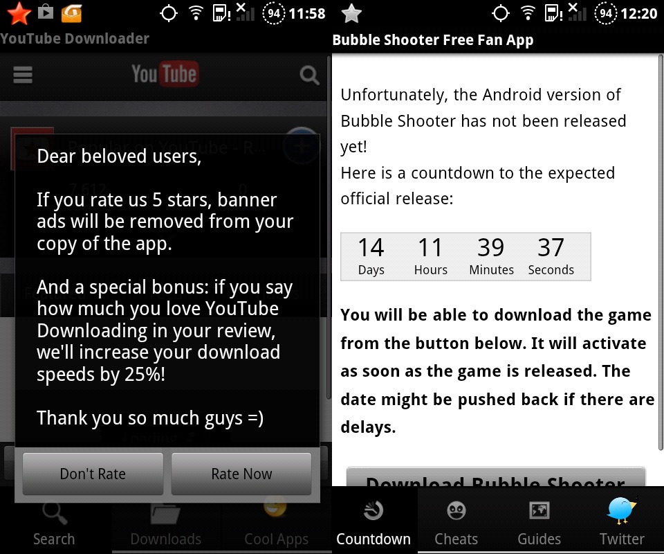 Platforma Androidu umožňuje instalaci softwaru z nedůvěryhodných zdrojů. Nicméně v roce 2012pokračovalo i šíření malwaru z oficiálního obchodu s aplikacemi Google Play, přes veškeré snahy Googlu minimalizovat kybernetickou zločinnost. Jedním z příkladů neobvyklého malwaru byla i ruská aplikace „Find and Call“, kterou v polovině roku objevili analytici Kaspersky Lab a která si našla cestu nejen do Google Play, ale i do Apple App Store. „Find and Call“ nahrála celý obsah adresáře z telefonu na vzdálený server, který pak na všechna čísla zaslal spamovou SMS tvářící se jako SMS od oběti.