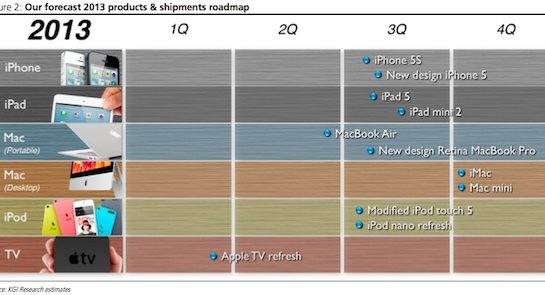 Ráno jsme vám přinesli informace o nové generaci iPhone od analytika společnosti KGI Ming-Chi Kua, který je známý díky svým velmi kvalitním odhadům a informacím, jenž se v minulosti již několikrát potvrdily. Kuo kromě informací o iPhone 5s a iPhone 5 v plastové verzi přinesl také informace o všech produktech společnosti Apple, které se v letošním roce představí. Je nutné dodat, že s názory pana Kua souhlasíme a pokládáme vše níže uvedené za více než pravděpodobné. Jediné co ještě v letošním roce očekáváme je náramek nebo hodinky od společnosti Apple, o kterém se více dozvíte přímo zde.