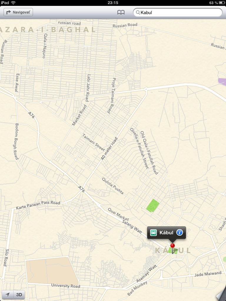 Keď sa už zdá, že Apple vyriešil všetky problémy svojich spočiatku nepodarených máp, na hladinu internetu vyplávala ďalšia správa o ďalšej chybe tejto aplikácie. Ešte pred pár rokmi študenti istej univerzity v Afganistane pridali na mapu hlavného mesta fiktívne názvy ulíc, ktoré jednak symbolizovali žart a zároveň slúžili ako dočasné názvy ulíc, ktoré ešte neboli oficiálne pomenované. Tieto dáta sa nedopatrením dostali i na servery mobilnej aplikácie Apple Maps a teda viacerých používateľov zrejme prítomnosť ulice Bad Monkey v hlavnom meste Kábul zaskočili.