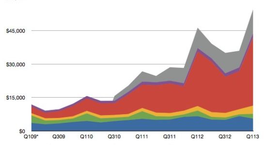 „Jsme nadšení rekordní tržbou více než 54 miliard dolarů a tím, že jsme prodali více než 75 milionů zařízení se systémem iOS v jednom čtvrtletí,“ uvedl Tim Cook. „Jsme si velmi jistí našim produktovým portfoliem a i na dále se zaměřujeme na inovace a vytváření nejlepších produktů na světě,“ dodal CEO společnosti Apple Inc. Tim Cook s tím, že ve druhém fiskálním čtvrtletí roku 2013 očekává společnost tržbu v rozmezí mezi 41 až 43 miliardami dolarů. Apple má v současné době v hotovosti a cenných papírech více než 137 miliard amerických dolarů.