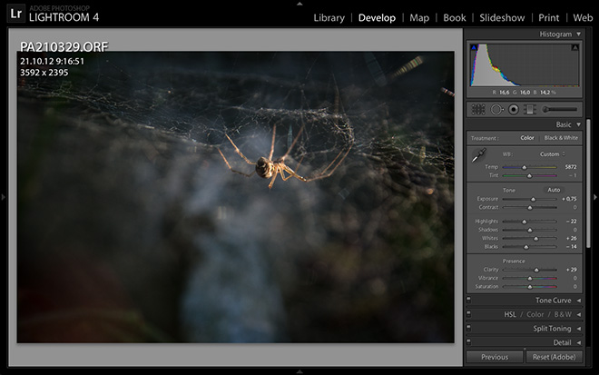 V dnešním díle se podíváme na základní funkce modulu Develop. Develop v překladu znamená vyvolání snímku a přesně o to v tomto modulu jde. Zde totiž napravíte vše, co se při pořízení snímku nepovedlo. V prvním díle jsme zmiňoval, že je vhodné fotit do Rawu. Laicky řečeno z Rawu dostanete více než-li z Jpg. A právě LR je práci s Rawem jeden z nejvhodnějších programů.