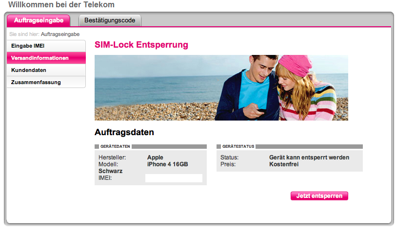 Pokud si koupíte blokovaný telefon který byl prodaný před více než dvěma lety, máte vyhráno. Zcela zdarma totiž můžete přímo na stránkách Německého T-Mobile požádat o odblokování zadání IMEI čísla, které T-Mobile nechá přímo u Apple vymazat z databáze blokovaných telefonů a telefon začne do 72 hodin fungovat s jakoukoli SIM kartou. Právě 72 hodin, tedy tři dny jsou doba během kterých Apple zpracuje a vyřídí žádost operátora. Nevadí že telefon který vlastníte je blokovaný na jiného operátora než na Německý T-Mobile. Prostřednictvím stránek T-Mobile.de můžete požádat o odblokování jakéhokoli iPhone. Bez problémů tedy můžete nechat odblokovat například telefon z USA. Pokud je telefon starší než dva roky, je tato služba zcela zdarma a stačí postupovat podle návodu níže.