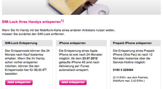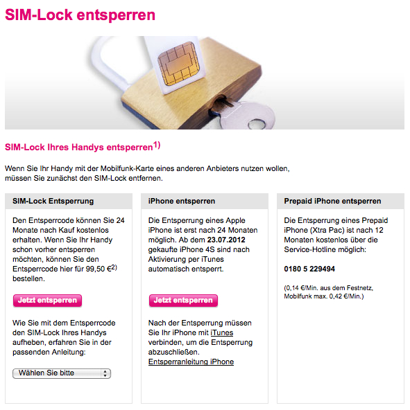 Je tak možné že na ebay.com narazíte na iPhone 4S za 200-250€, ovšem s tím že se jedná o blokovaný telefon který je možné používat pouze se sim kartou daného operátora. Pokud tedy třeba na německém ebay narazíte na skutečně výhodnou nabídku iPhone, zjistíte že si s ním v ČR/SR příliš nezatelefonujete. Naštěstí existuje řešení, zcela legální řešení které nabízí T-Mobile.de, tedy Německá odnož mezinárodního operátora T-Mobile. Operátor nabízí možnost odblokování mobilního telefonu v závislosti na tom, zda je telefon starší než dva roky nebo je mladší než dva roky.