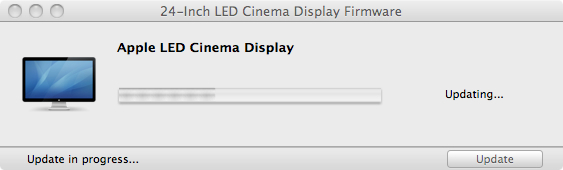 Samotnou aktualizaci která řeší problém s blikáním Apple LED Cinema Display po připojení k Thunderbolt portu si můžete stáhnout přímo zde. Než aktualizaci nainstalujete odpojte od MacBooku i od Apple LED Cinema veškeré kabely, kromě těch, které propojují monitor s MacBookem. Je důležité abyste k počítači ani displeji nepřipojili nic jiného než samotný displej, respektive MacBook nebo jiný Mac s Thunderbolt displejem. Nyní můžete spustit 24-Inch LED Cinema Display Firmware Update a počkat až se nový Firmware nainstaluje, během této doby nepoužívejte žádné porty. Následně se monitor vypne a za několik vteřin znovu spustí. Vše je hotovo a aktualizace nás informuje o jejím dokončení. Od té doby mi displej ani jednou neproblikl a vše funguje tak jak má.