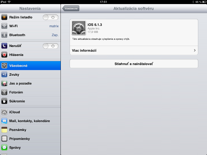 Apple pred niekoľkými minútami vydal novú verziu svojho operačného systému iOS, ktorý je tak dostupný vo verzií 6.1.3. Nový mini-update má približne 17MB a opravuje niekoľko chýb tohto operačného systému, vrátane chyby, ktorá umožnila obísť heslo na zamknutej obrazovke a dostať sa tak ku kontaktom, ako aj prináša opravu služby Maps v japonskom jazyku.